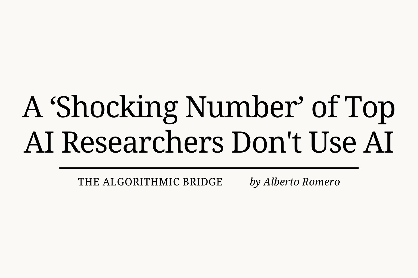 A respected source in the community says that a “shocking number” of frontier AI researchers are not using AI tools—not even their own. Coincidentally, a new Substack survey has found that half of the platform’s writers do. In other words: forward-minded nerds are not into the cutting-edge technology they themselves make while the self-serious literary crowd dips on it. How can we reconcile this paradox?