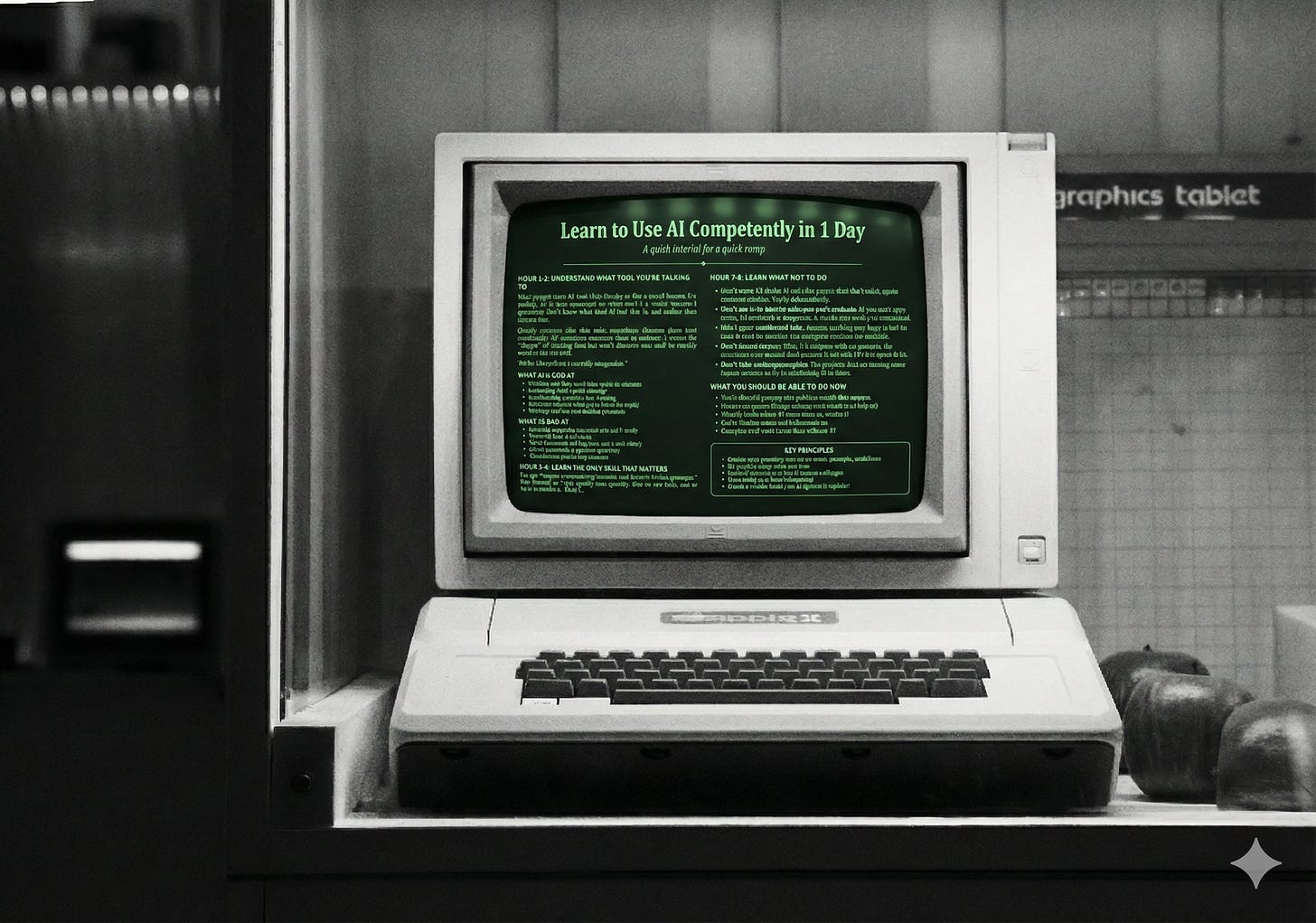 How can you get good at AI, fast? I’ve been asked this question many times, and although the response is often “there are no shortcuts, do the work,” there are ways to compress the learning curve. My posts are rarely beginner-friendly, so this is a welcome exception. Here’s a quick tutorial to learn to use AI competently in one day.