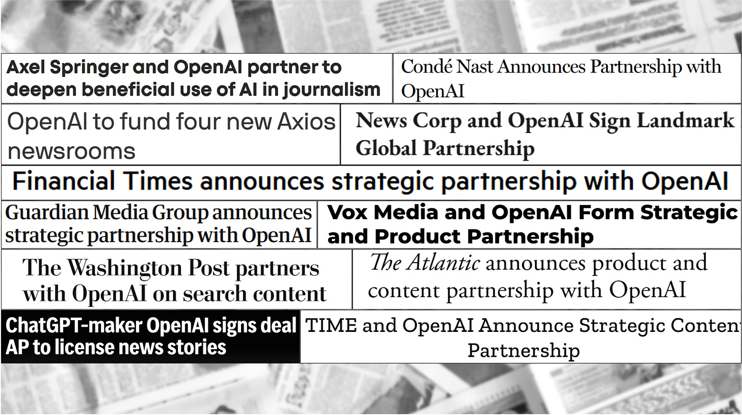 I only enlisted OpenAI’s deals to avoid making the list twice as long, but Google, Meta, etc., also have their share (although admittedly, the bigger players don’t really need that much data from news companies because they are the internet).